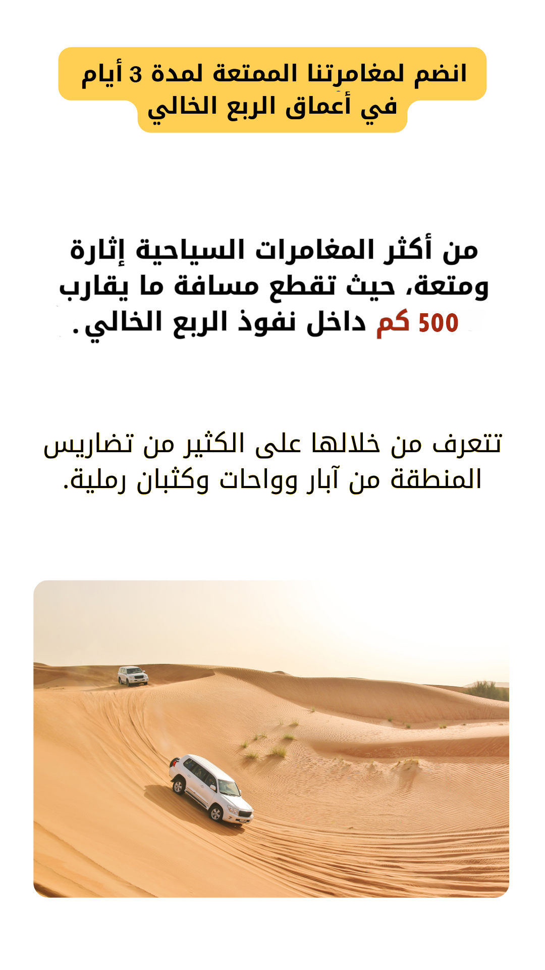 انضم لمغامرتنا الممتعة في رحلة الربع الخالي (مسار النيزك) أيام الخميس والجمعة والسبت في رحلة مليئة بمتعة المغامرة.